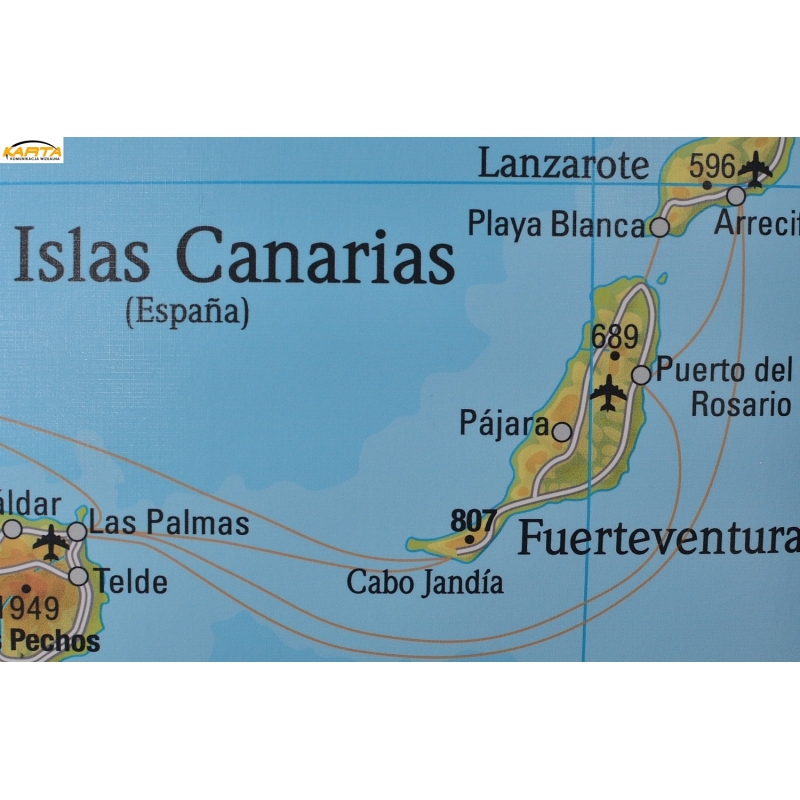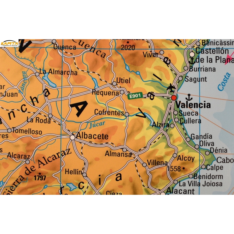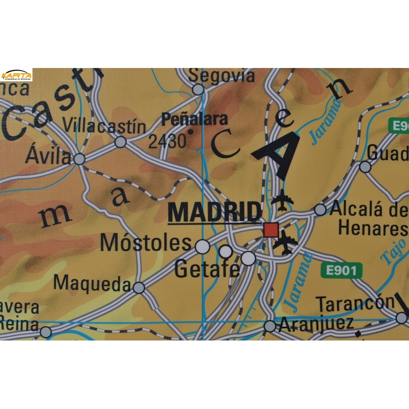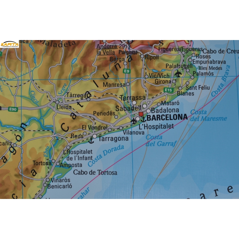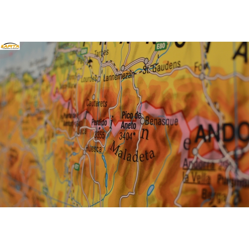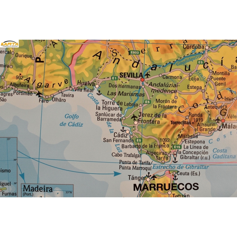 Hiszpania i Portugalia fizyczna 158x113cm. Mapa do wpinania.