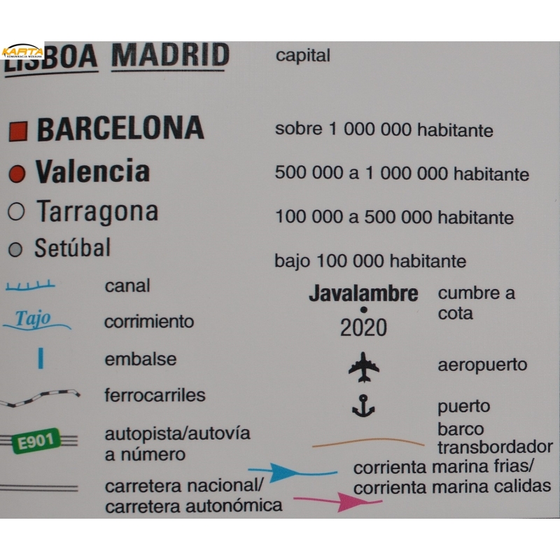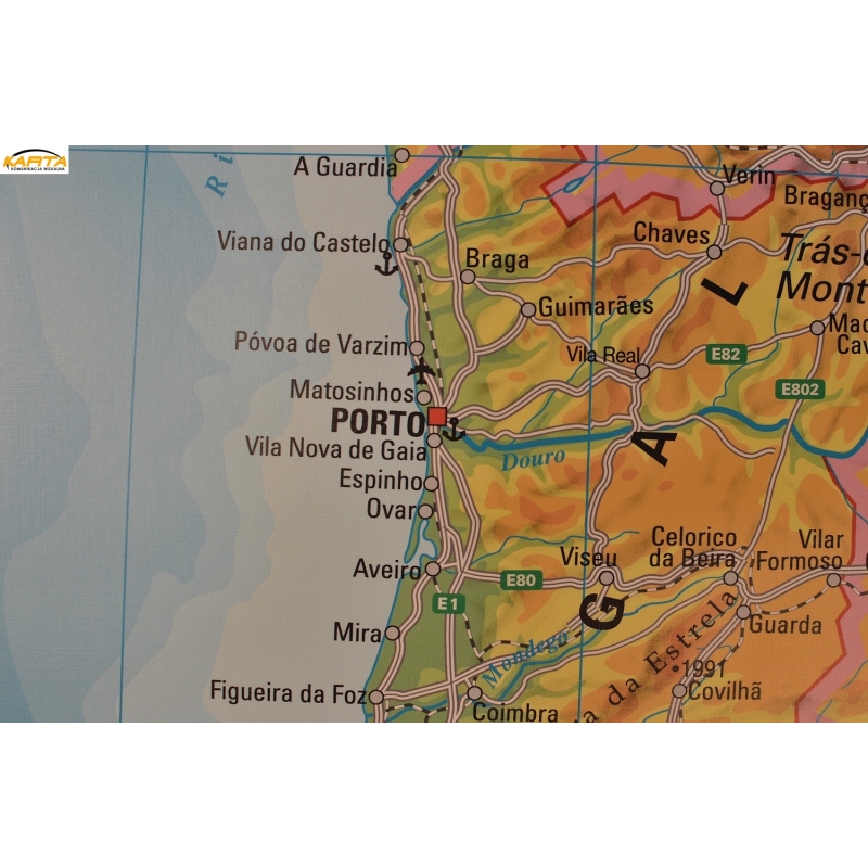 Hiszpania i Portugalia fizyczna 160x120cm. Mapa w ramie aluminiowej.