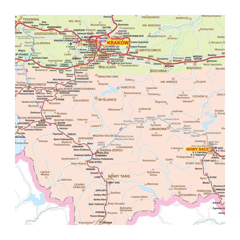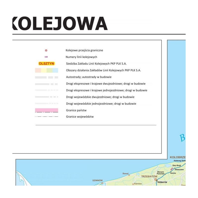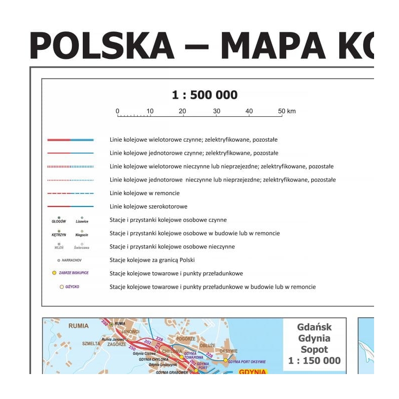 Polska kolejowa 168x140 cm. Mapa ścienna.