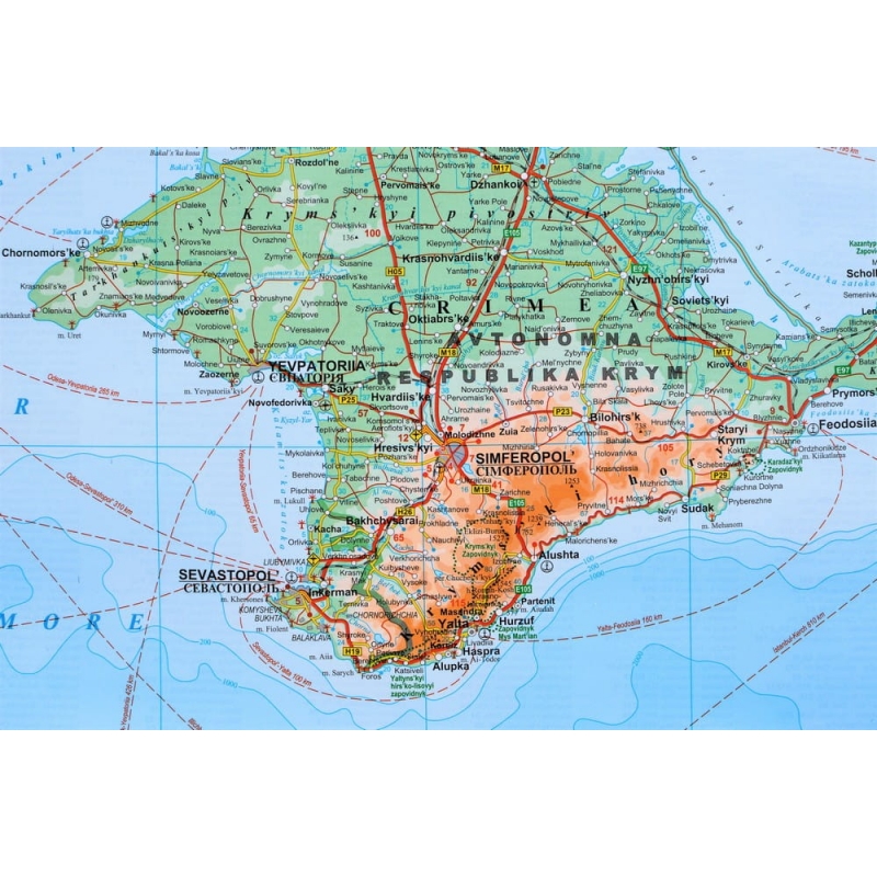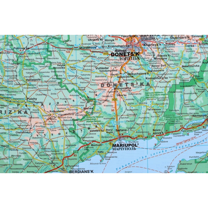 Ukraina i Mołdawia fizyczno-drogowa 130x90cm. Mapa w ramie aluminiowej.